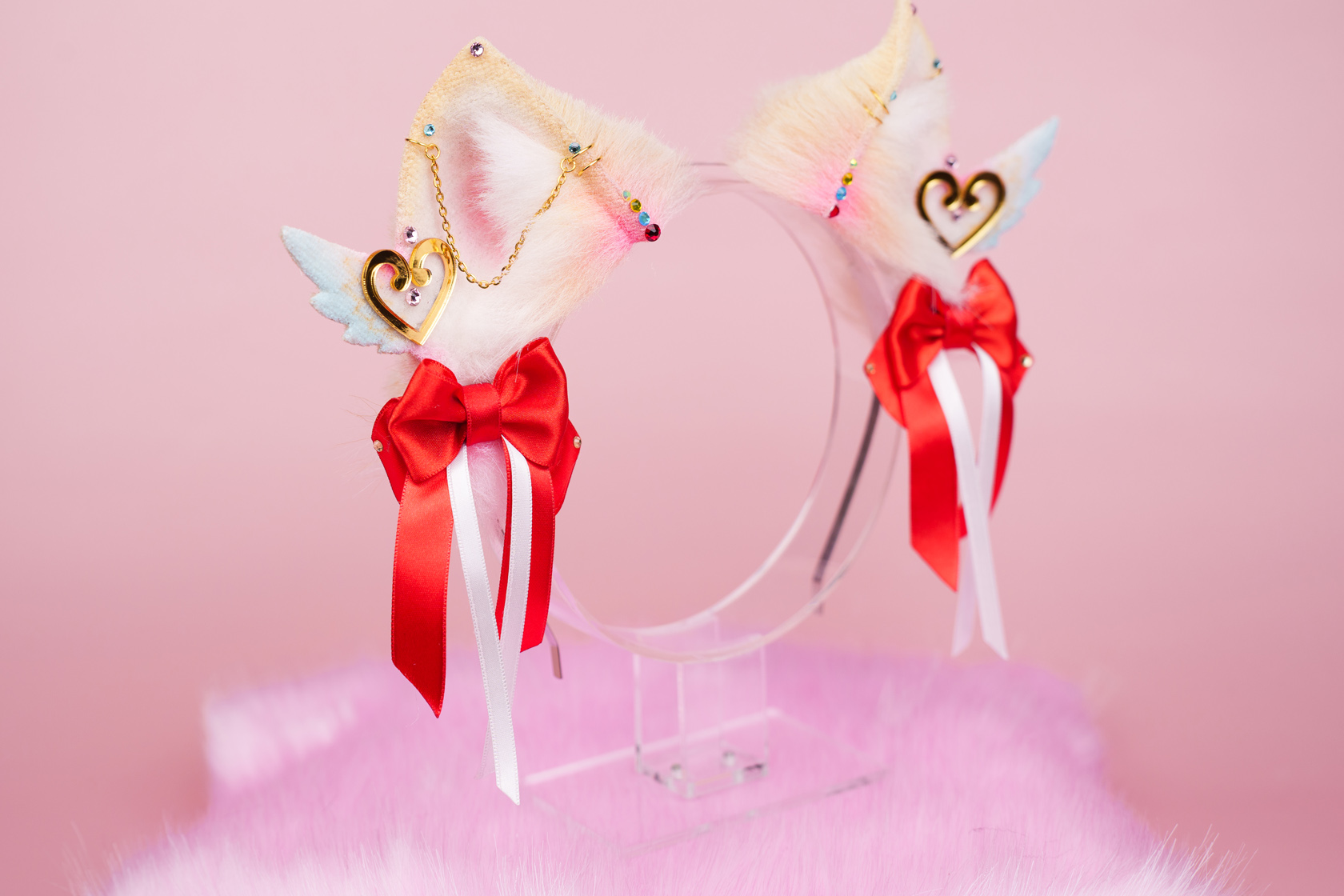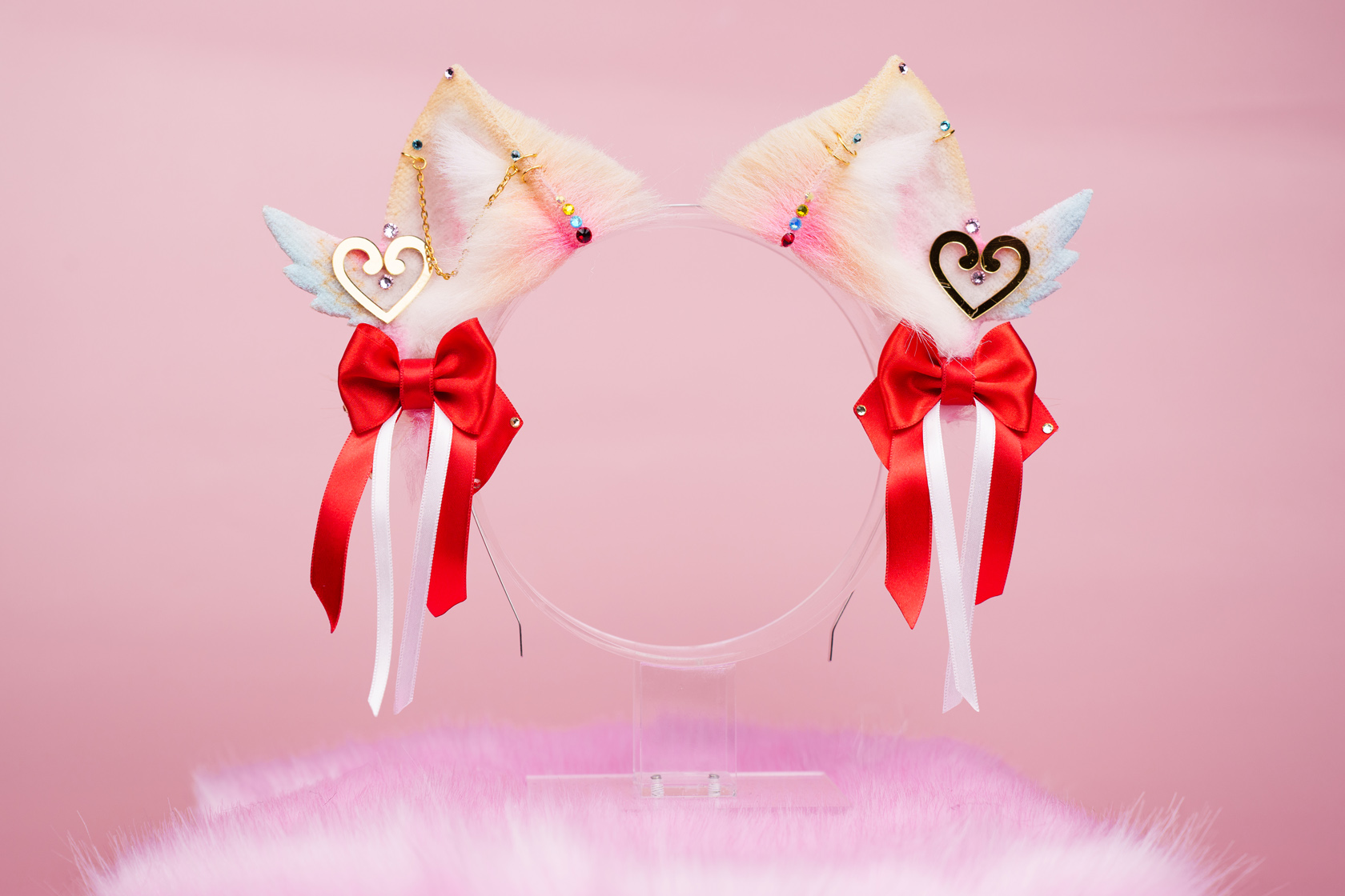 - BowsCompletely handmade. The ears are made of high quality fur, moving through the hoop. Decorated with Swarovski Crystals, hoop rings, rhinestones.
